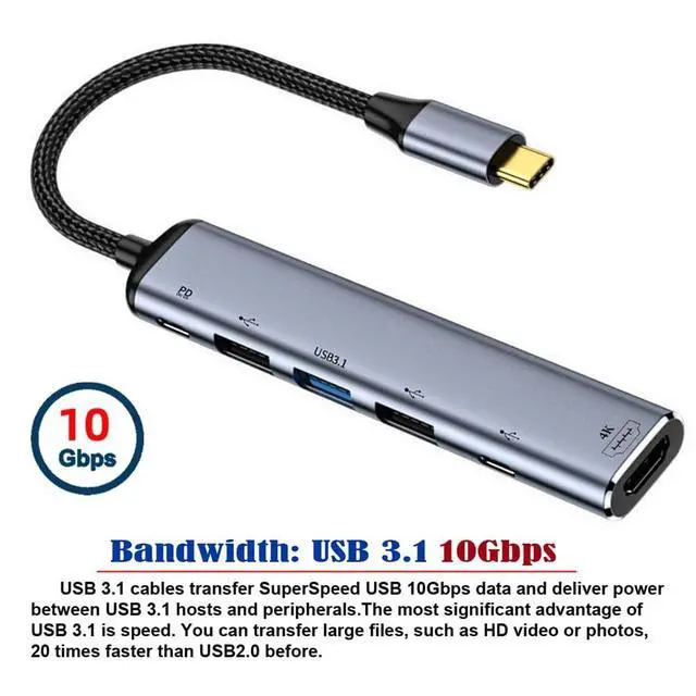 USB-C Type C to HDMI 4K Dual USB 3.0 HUB Converter Adapter 60hz with Female 100W PD Power PortYou can also connect a charging cable to the USB-C port to charge your laptop. USB-C HDMI Adapter lets you connect your laptop with USB-C port to any HDMI display or projector. While also connecting a standard USB device and a USB-C charging cable. 4K 60hz HD resolution for HDMI to enjoy entertainment as it was meant. This adapter allows you to mirror your laptop display to your HDMI-enabled TV or display.