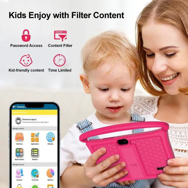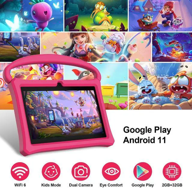 VOLENTEX kids tablet, 7 inch Android 13 tablet for toddler with Parental Control, Pre-Installed Kids Educational Game Apps, Protective Case, Children Learning Tablets for boys girlsAndroid 137 inch HD screenSpecially Designed CaseFront 0.2MP / Rear 2MP Dual CameraWhat's in the