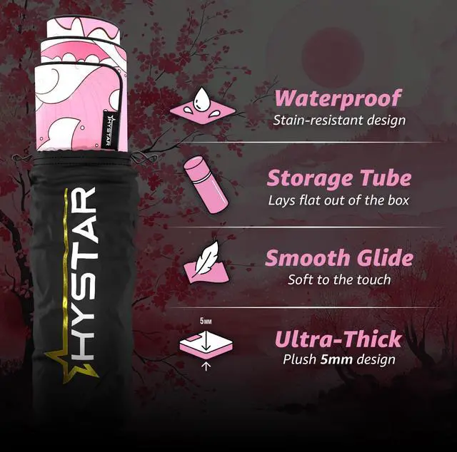 Tailored Artwork - Our signature artwork is crafted exclusively for your desk. From the hand-picked colors to the designs that blend seamlessly into your setup, this is the perfect centerpiece to freshen up your setup. ^^ Water-Resistant Design - Say goodbye to the unpleasant, sluggish experience with other pads. Our water-resistant design guards against accidental spills, resists humidity, and ensures your mat is effortless to clean. ^^ Premium Materials - Hand-crafted from the best fabric and natural rubber materials possible. Our never-fade printing on our silky smooth polyester fabric is designed to last for years of use and cleaning without ever fading.