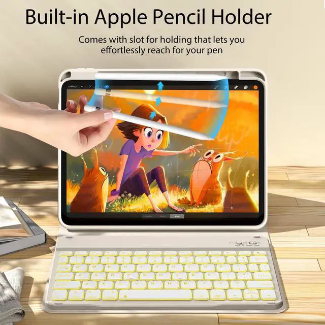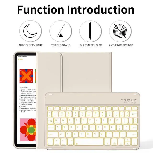 kenke for iPad 11/10th Gen Case with Keyboard 11/10.9 inch 2025 A16/2022, Detachable Wireless Bluetooth Keyboard Case with Right Side Pencil Holder, Backlit White Square Keycaps (Cream)