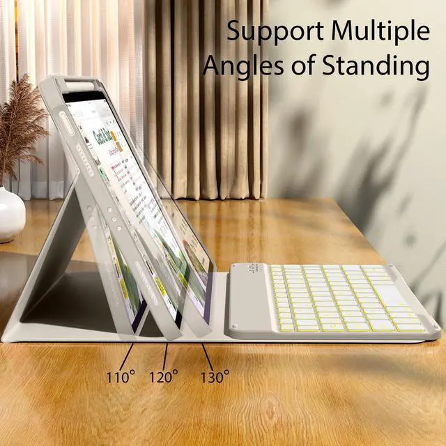Long Battery Life & Multi Angle SupportBuilt-in industry-high rechargeable Li-polymer battery make the wireless keyboard of this 11/10th gen iPad case with keyboard stand by for more than 3 days after 2-3 hours of full charge. The protective shell can be placed at different tilt angles to adjust the optimal viewing angle, very flexible and user-friendly.