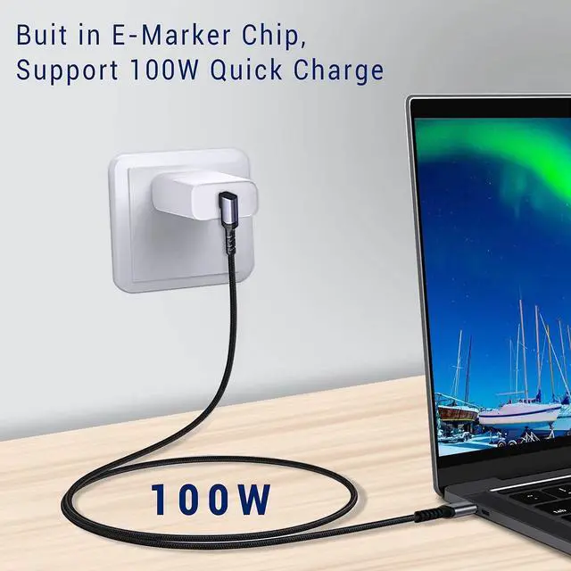 100W Fast Charging Cable: This is USB C to USB C 100W cable. Build-in E-marker chip with 100W power max 5A current and support USB PD3.0 QC3.0 fast charging