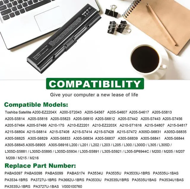 Replacement Part Number: PA3533U-1BRS PA3533U-1BAS PA3534U-1BAS PA3534U-1BRS PA3535U-1BAS PA3535U-1BRSPABAS098 PABAS099 PABAS174 PA3727U-1BRS PA3682U-1BRS PA3727-1BASCompatible Models: Equium A200 SeriesSatellite A200 SeriesSatellite A200Satellite A202Satellite A203Satellite A205Satellite A210Satellite A215 SATELLITE A300 SERIES Satellite A300 Satellite A305 Satellite A305D SATELLITE A350 SERIES Satellite A350 Satellite A355 Satellite A355DSATELLITE A500 SERIES Satellite A500 Satellite A505 Satellite A505DSATELLITE L200 SERIES Satellite L200 Satellite L201 Satellite L202 Satellite L203 Satellite L205SATELLITE L300 SERIES Satellite L305 Satellite L305DSATELLITE L400 SERIES SATELLITE L500 SERIES Satellite L500 Satellite L505 Satellite L505D Satellite L550 Satellite L555 Satellite L555DSATELLITE M200 SERIES Satellite M200 Satellite M202 Satellite M203 Satellite M205 Satellite M206 Satellite M207 Satellite M208 Satellite M209 Satellite M211 Satellite M212 Satellite M215 Satellite M216SATELLITE PRO A200 SERIES Satellite Pro A200 Satellite Pro A210SATELLITE PRO A300 SERIES SATELLITE PRO L300 SERIES Satellite Pro L300Satellite Pro L350-16N Satellite Pro L350-16P Satellite Pro L350-181SATELLITE PRO L450 SERIES Satellite Pro L450SATELLITE PRO L500 SERIES Satellite Pro L500 Satellite Pro L550Satellite Pro P300-1CGMore compatible p/n: n00231 psaf3u-0pv00v psat6u-005002 v000090420 v000091200 v000100760 etc.