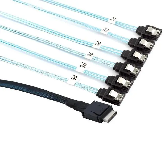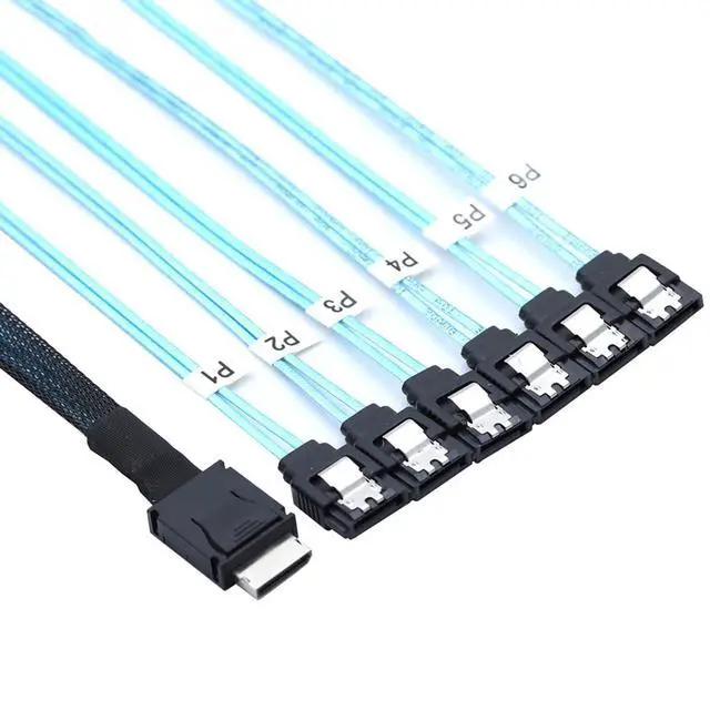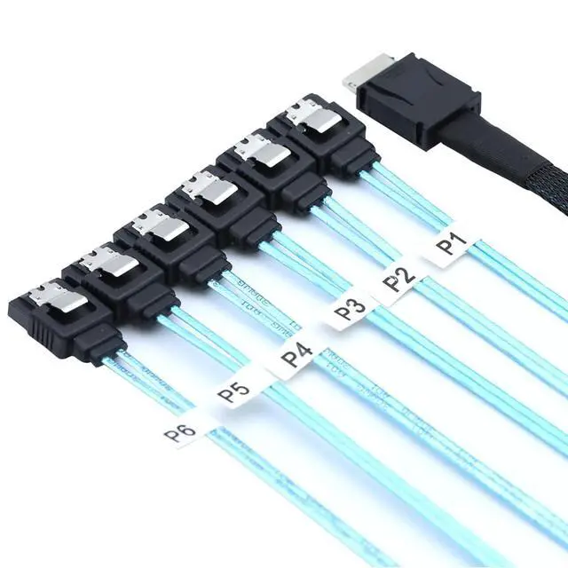 Connection CableCable Length: 0.5 m, 1.0 m (Optional) Product DescriptionEnterprise-Grade Storage Expansion CableThis PCIe Oculink SFF-8611 4i to 6x SATA 7P female cable is designed for high-performance servers and enterprise storage systems. Supporting up to 12Gbps single-channel transmission, it ensures fast and reliable connectivity between SAS controllers and multiple SATA drives. Durable 32AWG ConstructionMade from premium 32AWG copper wire, this cable provides low-loss signal transmission with excellent shielding, reducing interference and maintaining stable performance in demanding data center environments. Support for Multiple DrivesFeaturing 6x SATA 7P female connectors, the cable enables one Oculink SFF-8611 port to connect directly to six SATA hard drives, offering cost-effective and efficient storage expansion. Flexible Installation LengthsAvailable in 0.5 m and 1m, this cable adapts to different installation environments, including compact rack-mounted servers or standard enterprise setups. Wide CompatibilityCompatible with RAID cards, SAS controllers, and server motherboards that support Oculink SFF-8611 4i interface, delivering seamless integration for enterprise-level storage infrastructure.