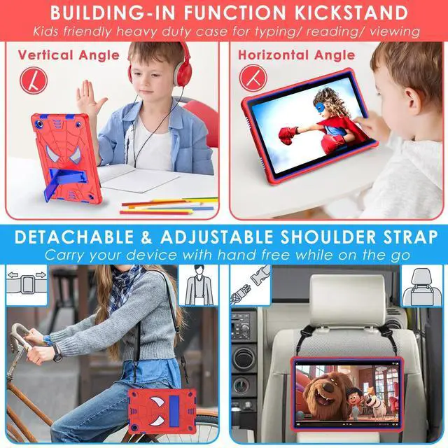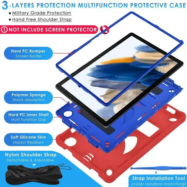 [Warm Tips]: Please check the tablet model and camera position refer to the model COMPATIBILITY image [2] before purchase (Click "Settings-System-About Tablet-Model") ^^ 3-LAYERS FULL BODY PROTECTION- Funda para Samsung Galaxy Tab A8 10.5" tablet case for combined of hard PC top frame bumper (NOT INCLUDE SCREEN PROTECTOR) + polycarbonate inner shell + soft silicone outer cover with corner protection design. This hybrid heavy duty shockproof Samsung SM-X200 case provides total full body protection against scratches, shocks, fingerprints and dust ^^ 4-ANGLES VIEWING CASE FOR GALAXY TAB A8 10.5" - Funda para Galaxy Tab A8 10.5" case for SM-X205 could be adjusted to 4 angles and make your tablet works like a laptop, so it's perfect for typing or watching. Free your hands for other entertainments to avoid any joint pain ^^ SHOULDER STRAP & PRECISE HOLE CUTTING- (1) Samsung tablet SM-X200 case come with a black shoulder strap (length adjustable), it can be suspended in the car seat back for watching safety. It's convenient for you to carry on the tablet during outdoor activities. (2) Case for Galaxy Tab A8 10.5 inch 2022 SM-X207 has accurate hole cutting, allows easy access to all the buttons, controls & ports without having to remove the case ^^ MILITARY GRADE PROTECTION & AFTER-SALES SERVICE- Samsung Tab A8 2022 10.5 inch heavy duty tablet cover enhanced drop protection with extra shock absorption to protect your precious device.