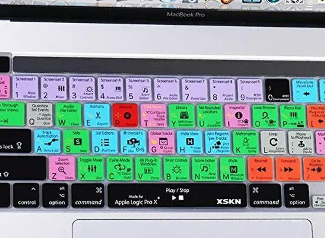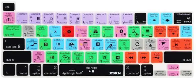 skin/protector-Suitable device: for 2019 New MacBook Pro 16 inch A2141 and for New MacBook Pro 13.3 inch M1 M2 chip A2251 A2289 A2338 US version-Product material: silicone- Logic Pro Shortcuts design (English), QWERTY character layout-Upper side adopted rubber coating, gives you a comfortable soft touch feeling and protect the keyboard cover from losing color-Lower side is shiny surface, make the keyboard cover fit perfectly on your keyboard without any sticker/glueKnow your keyboard version: EU version--- the "Enter/Return" key looks like numeral "7", please choose "US & EU version"US version--- the "Enter/Return" key is a horizontal wide bar, please choose "US version" (US&EU version works too)XSKN US&EU version fits both US version and EU version keyboard, product looks exactly same as photo display, it covered 2 nearby keys, which does not affect normal use, printing on it will show you where to pressSpecial notes: -XSKN assure every product provided with excellent quality-Affected by daylight, product color may look slightly different under camera-Camera's Focus Mode will make focused part preety clear and unfocused part fuzzy, but real product will be nice and clearPackage