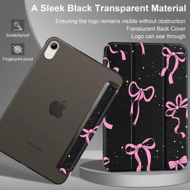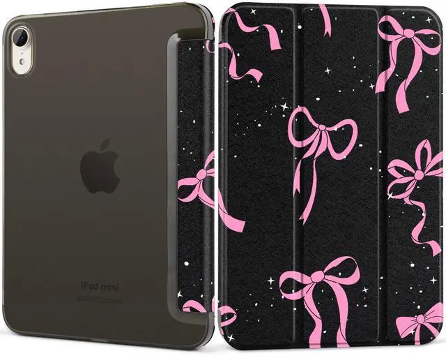 DONGKE for iPad mini 7 (A17 Pro) 2024 & iPad mini 6 2021 8.3 Inch, Slim Foldable Stand Hard PC Translucent Back Shell Smart Cover for iPad mini 7th/6th Generation [Auto Wake/Sleep] - Bows & Stars