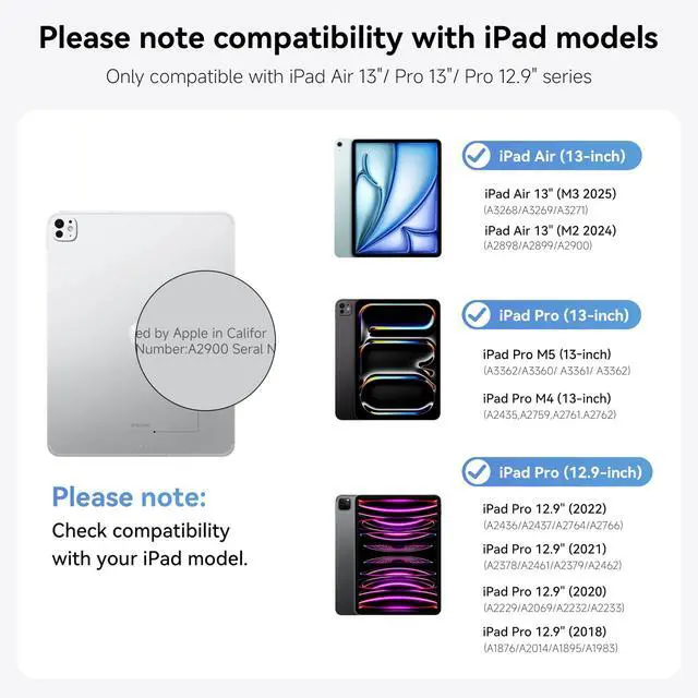 Compatibility Check: Specifically designed for 13-inch iPad Air (M3/M2, 2025/2024 models), 12.9 -inch iPad Pro (6th/5th/4th/3rd Gen), and iPad Pro 13" M4