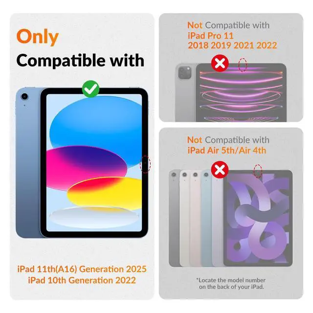Compatibility: Specifically compatible with iPad 11th (A16) 2025, iPad 10th 2022, models: A3354 A3355 A3356 A2696 A2757 A2777 A3267 A3270 A2902 A2903 A2904, not compatible with any other iPad models. Make sure the camera is on the long side of the iPad, not the short side. Please check your iPad model before purchasing ^^