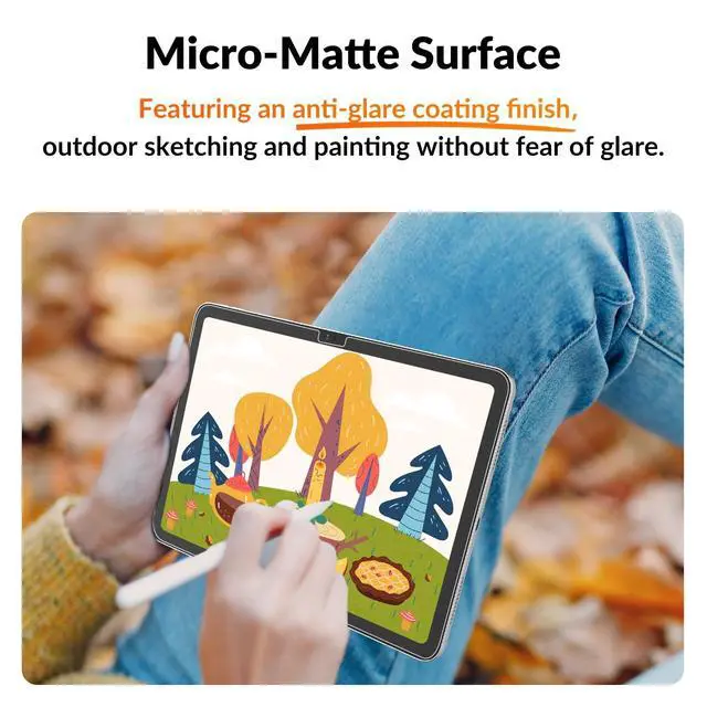 Anti-Glare: Enjoy a smooth creative experience anywhere. This protector's delicate frosted finish is engineered to combat glare and harsh light reflections on your iPad 10th generation screen protector. Draw outdoors; your artwork will shine true, even under the sun