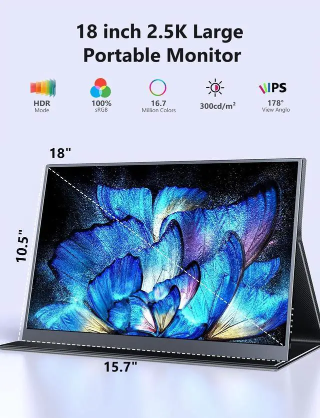 Portable Monitor: MagicRaven portable monitor equips spectacular IPS A-grade screen with 18.5 inch, 2560*1600 resolution, 60 hz refresh rate, 300 nits brightness, 1000:1 contrast ratio, 100% sRGB and 178 degree wide viewing angle. This second monitor has HDR, Low Blue Light and FreeSync features. It will show crisp color, vivid image and clear detail.