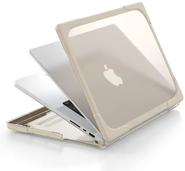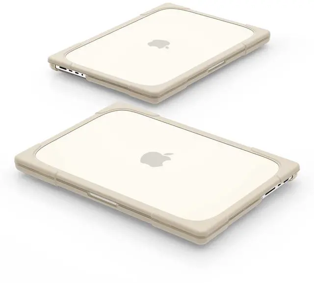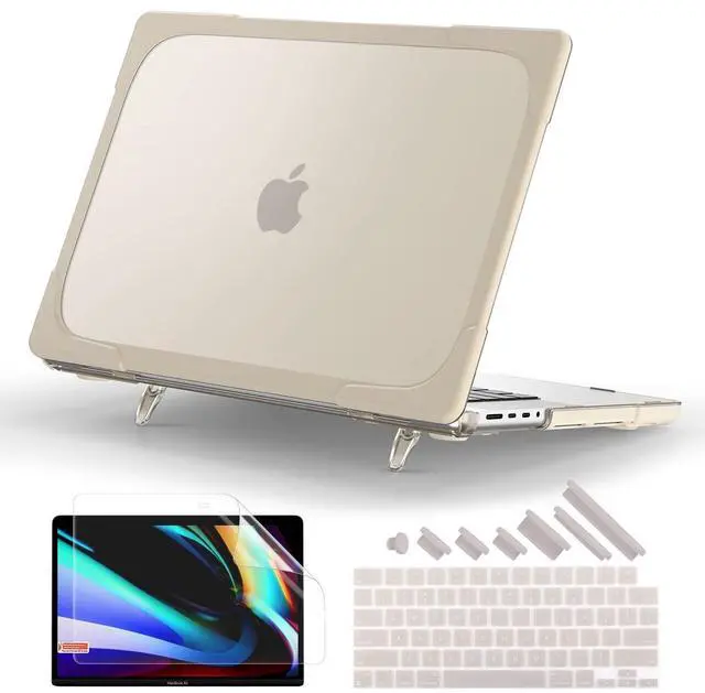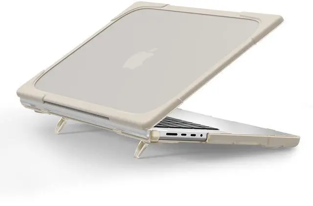 MILITARY-GRADE HYBRID ARMOR- A true heavy-duty hybrid fortress built for users who carry their MacBook everywhere. Features a scratch-resistant matte PC back paired with a thick, shock-absorbing TPU bumper. Reinforced Airbag corners disperse impact from real-world drops, backpack pressure, and daily accidents protection designed to survive travel, not just desk use. ^^ ALL-IN-ONE ERGONOMIC WORKSTATION Ditch your bulky metal stand. The built-in Invisible Foldable Kickstand raises your screen to a comfortable eye level, reducing neck strain during long work, study, or coding sessions.