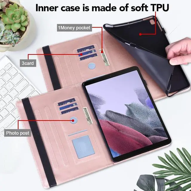 Wallet Feature: The card slots can be used to store credit cards and the pencil holder is designed to carry a touch screen pen, and the elastic strap can be used to fix the protective cover ^^