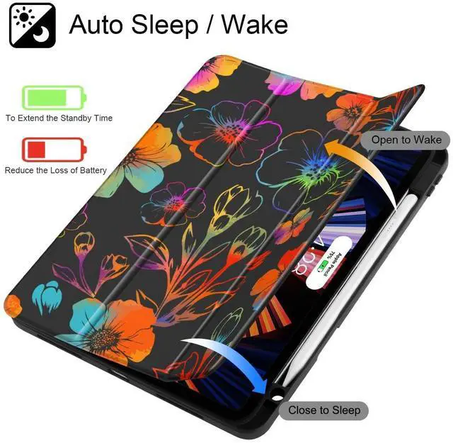 Multi-function Stand: Slim Lightweight Trifold Stand provides viewing and typing stand mode, Magnetic smart cover supports auto wake & sleep function. Powerful magnet secures the case closure, more convenient to snap on and off the tablet, extend the battery life ^^ Auto Sleep /