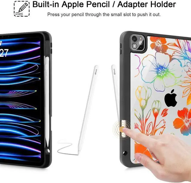 Pencil Holder: Design with pencil holder, easily to pull out and store your pencil, Support 2nd gen Apple Pencil wireless charging and Precise cutouts easily access to all buttons. pencil NOT included
