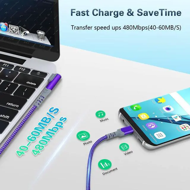 It built-in laser welding technology, which ensure the metal part won't break ^^ Universal CompatibilityThis is the USB c to c cable not the USB-C to USB-A cable, Compatible with virtually all USB-C devices including phones, tablets, and laptops. Such as Samsung Galaxy S22/S21/S20/ S20+/ S20 Ultra/ Note 10, MacBook Air/Pro 13'', iPad Pro 2021/2020/2018, iPad Air 2020 and more ^^ What you get5Pack (Blue-Green-Purple-Rose-Silver) of 10 ft USB C to C cable the length is fit for home/work or play together, that no need to sit next to the plug anymore.