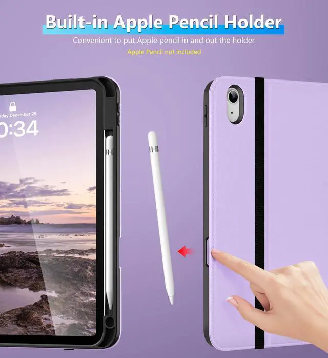 Number: A2602/A2604/A2603/A2605/A2270/A2428/A2429/A2430/A2197/A2200/A2198). Not compatible with any other iPad model ^^ Internal embedded 360-degree rotating design, flexible rotation to any angle for comfortable watching movies or typing. Built-in leather hand strap (one-handed operation) ^^ Built-in pencil holder, Pencil holder securely carries and protects Apple Pencil wherever you go.