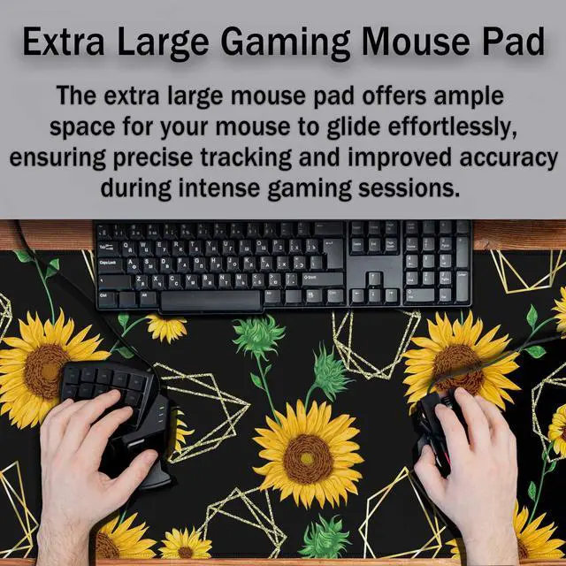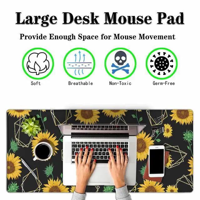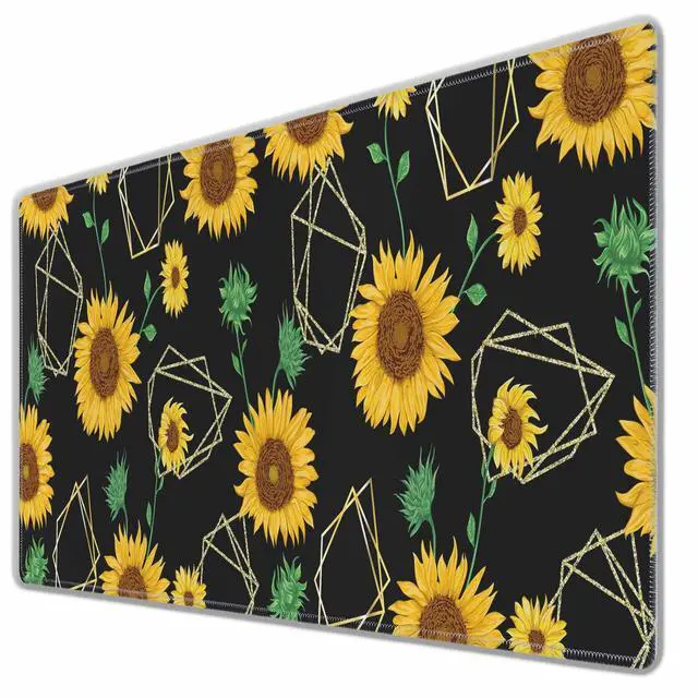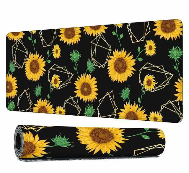 Y YIHANGBEST Sunflowers Yellow Mouse Pad Sunflower Gold Geometric Green Leaf Keyboard Mat Large Gaming Mousepad for Desk,Office,Bed 35.4"X15.7"