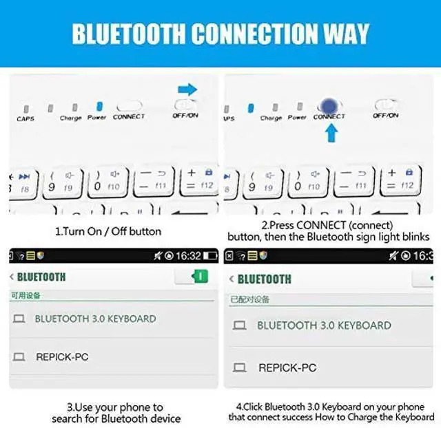 List: 1 x Bluetooth Keyboard & Case1 x USB Cable