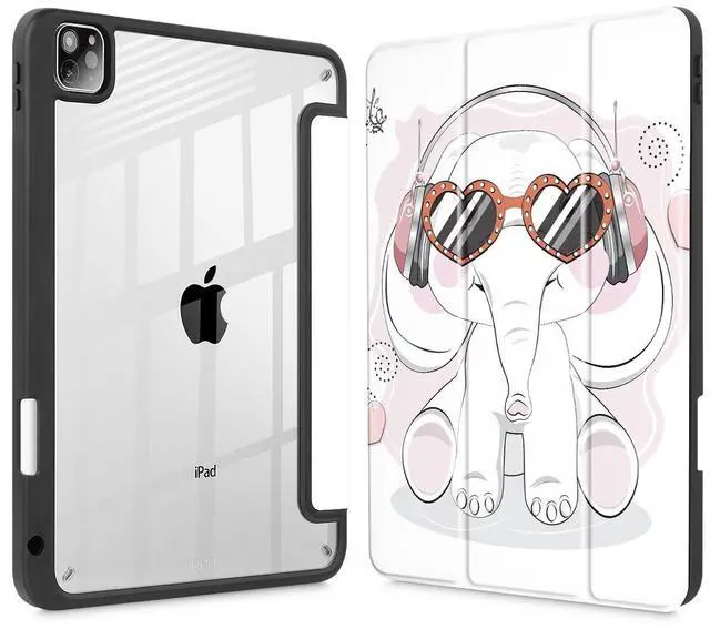 Tuiklol Case for iPad Pro 12.9 Inch M2 Case 2022 2021 2020 2018 Generation 6th/5th/4th/3rd,Built-in Pencil 2nd Holder Clear Transparent Protective Back Shell Cover, Lovely Elephant
