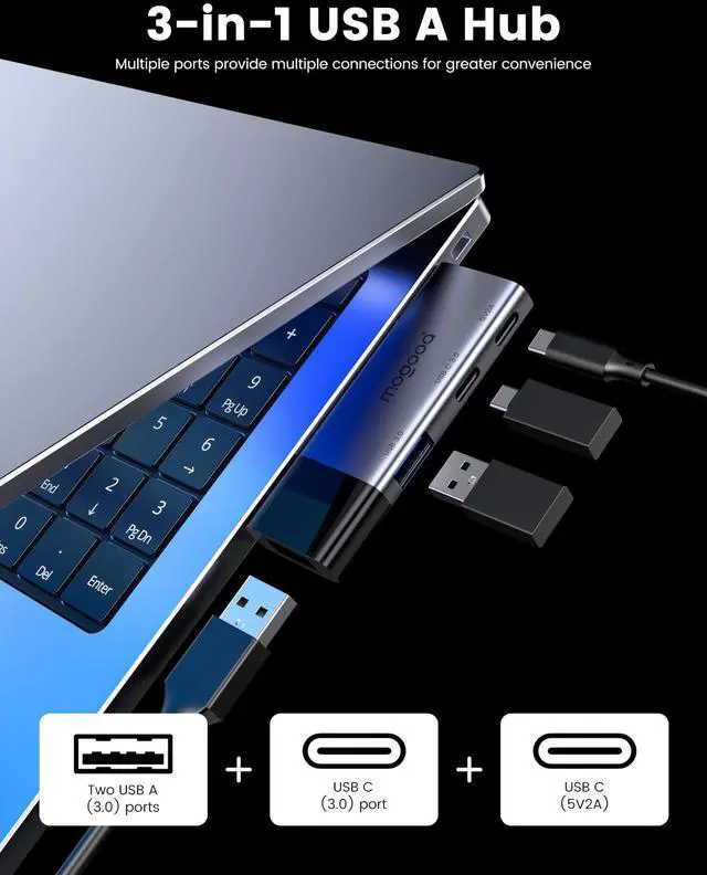 Hub Multiport Adapter: contains 2*USB A 3.0 and 1*USB A 3.0 ports, supports super faster data transfer up to 5Gbps which is 10X faster than USB 2.0 (480 Mbps), which allows you to transfer datas in just seconds; USB extension hub was built in OTG function chip, it can easily connect the mouse, keyboard, USB disk, and other USB devices to your laptopKindly