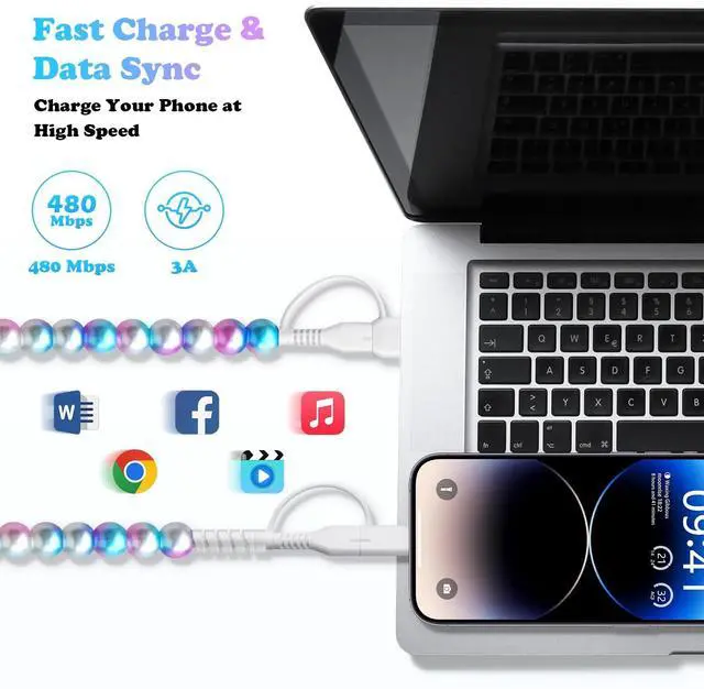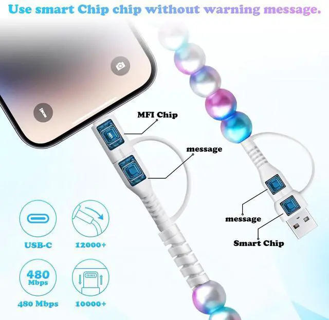 Universal Compatibility: This USB to USB C beaded charging cord for iphone connectors cute charging cable for girls is fully compatible with a wide range of devices, including smartphones, tablets, laptops, for iPhone 17/16/15/14/13/12/11 series, for iPad Pro/ for Air, and for iPod or other devices. ^^ Fast Charging & High -