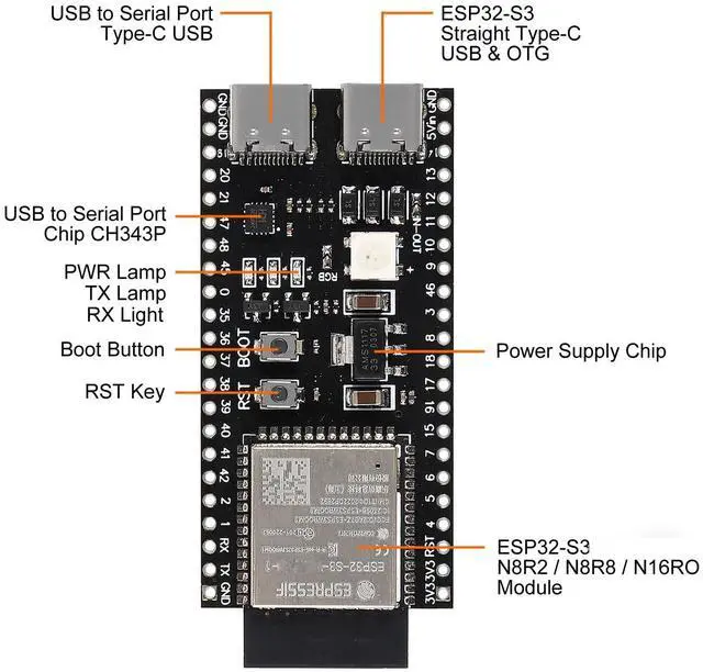 Setup: Please proceed to Get Started, where Section Installation will quickly help you set up the development environment and then flash an application example onto your boardPackage include: 3 x ESP32-S3-DevKit C N16R8 development board