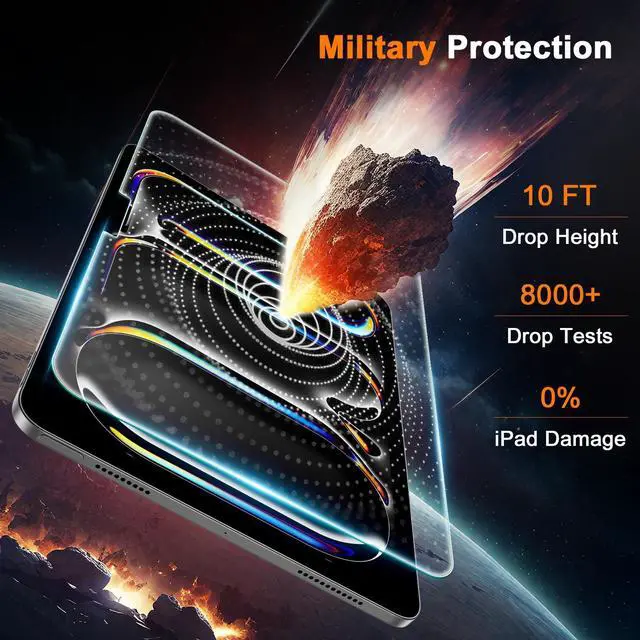 One-Click Installation: The innovative automatic positioning, dust removal and adsorption technology enables the installation to be completed easily within seconds. Anyone can become an expert in using iPad Pro11 Inch screen protectors without any bubbles or flaws ^^ Military-Grade Shock and