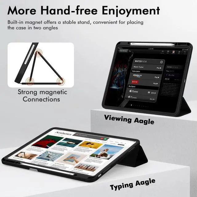 [Different Viewing Angles] Designed with dual standing positions for users to adjust the iPad into different angles.