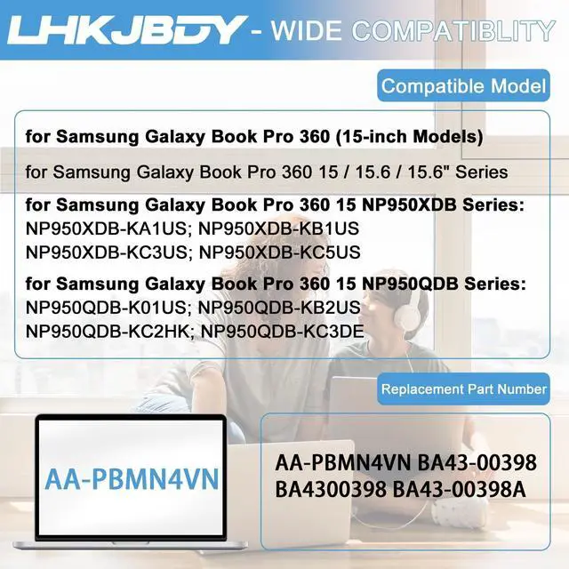 Compatible Laptop Models: AA-PBMN4VN battery fit for Samsung Galaxy Book Pro 360 15/ 15.6 / 15.6" Series; fit for Samsung Galaxy Book Pro 360 15