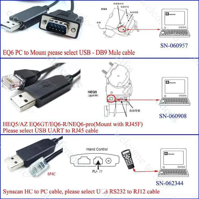 PC or Asiair to Skywatcher Telescope Mount Cable. USB to RJ45 8P5C Console Cable ^^ EQMOD skywatcher goto control telescope for replacing hand control with ASCOM for HEQ5pro AZEQ5 AZEQ6 EQ6-R ^^