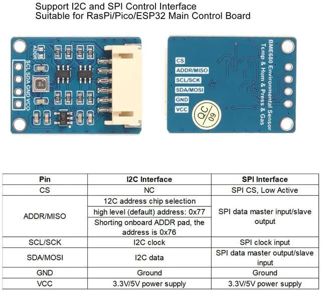 ^^ I2C Interface: This BME688 environmental sensor supports I2C interface communication, I2C address configurable, and support I2C bus cascading.