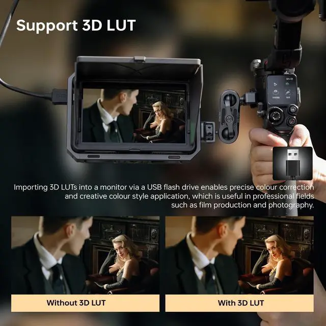 ^^ Precision Color Control: Achieve accurate color grading with USB 3DLUT input and a built-in 3DLUT list. Customize your color grading workflow effortlessly whether you're on set or in the studio. With the cages ergonomic design, buttons and controls are strategically placed for easy access, improving efficiency during long shoots.