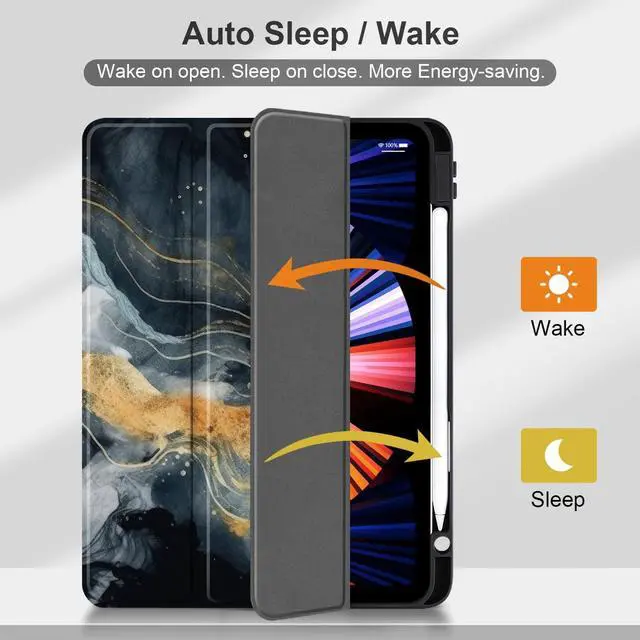 Sleep Functionality: Seamlessly wake up your iPad Pro by simply flipping open the cover, and effortlessly put it to sleep by closing the cover, ensuring convenience and conserving battery life ^^