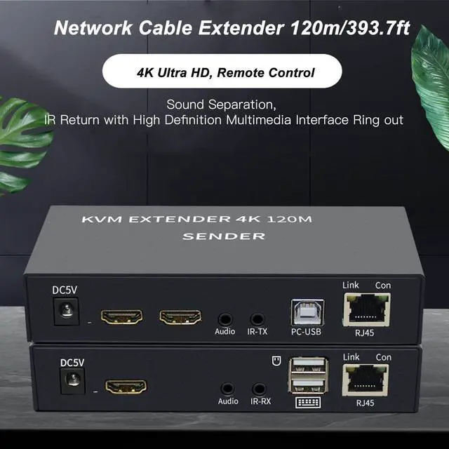 NETWORK CABLE EXTENDER: 4K HD Multimedia Interface extender enables sound separation, IR return, with High Definition Multimedia Interface loop out. Suitable for keyboard, mouse, computer host, for PS3 4.