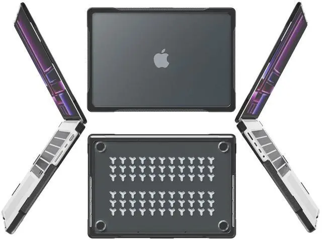 Structure": a scratch-resistant Polycarbonate (PC) hard back fused with a shock-absorbing TPU bumper. The reinforced corners act as airbags for your Mac, absorbing impact from accidental drops and knocks. Its not just a cover; its insurance. ^^ ENGINEERED DENSITY ( 1.2 LBS OF REAL SAFETY) [HONESTY ALERT] Real protection has mass. We prioritized density over thinness to ensures the heavy-duty bumpers are thick enough to actually work. Due to its large size, Weighing in at approx. 542g ( 1.2 lbs, the top and bottom cover). If you want featherweight slim cases that crack easily, this isn't for you. But if you want a case that feels like a shield, youre in the right place. ^^ TACTICAL GRIP & MATTE FINISH Say goodbye to the slippery, fingerprint-magnet aluminum body. Our translucent matte finish resists oily smudges (perfect for Midnight color users) while preserving the Apple logo's visibility. The edges feature a rugged Carbon Fiber texture, providing superior friction ensures a secure, non-slip hold for one-handed carrying during commutes or field work. ^^ Y-VENT COOLING & PORT ACCESS Designed to keep your pro machine running cool.