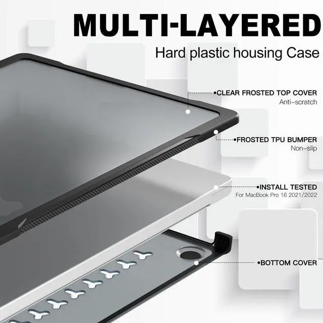 IMPORTANT: To ensure maximum corner protection, the side bumpers are thick. This means it works perfectly with cable adapters, but IS NOT compatible with flush-mount dual USB-C hubs that sit flat against the laptop. ^^ CRITICAL MODEL CHECK & BUNDLE STOP: Custom molded ONLY for New MacBook Pro 16" 2024 2023 2021 (model number: A3403/A3186/A2991/A2780/A2485). Check the model number on the bottom of your MacBook. Do not force onto other models.