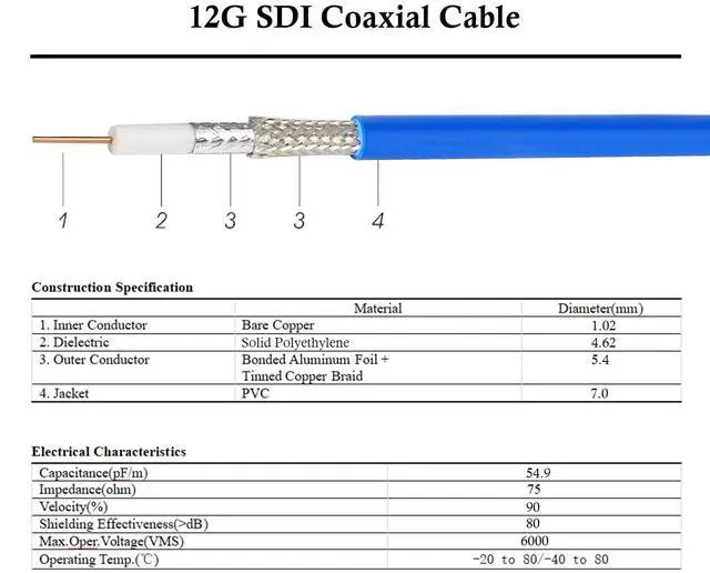 BNC connectors: made of copper nickel plated, 75-ohm cables/connectors are made for high quality digital video and are able to scale their output depending on the input received. ^^ Dual RG6 12G Shield Cable is made of tinned copper braid and aluminum foil conductor that features exceptionally low attenuation. Extra shielding added to the cable to ensure 12Ghz performance. ^^ Suitable for HDTV and professional SDI applications. Supports 3G/6G/12G/HD-SDI. Compatible with video Matrix / sdi converters / surveillance camera / hard disk recorders / monitor. ^^ Supports 12G HD SDI Bandwidth for 1080P, 4K Video and Beyond, Conforms to SMPTE ST-2082 12Gb/s.
