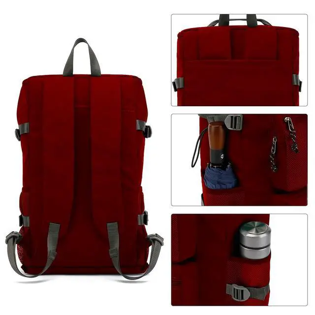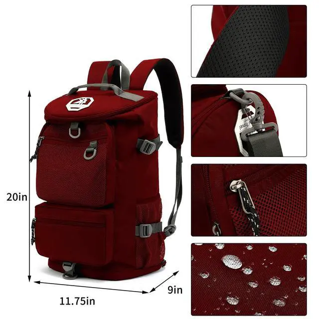 Dimensions 11.75 x 9 x 20 inches (L x W x H). Lightweight, only 1.98LB. ^^ Large Capacity Roomy Space with practical pockets provides you enough items storage and helps you organize them easily, including 1 front pocket/1 main large compartment/2 side pockets (for bottle and umbrella) /1 shoe compartment. The main compartment contains 1 upper mesh zip pocket, 1 notebook compartment, 2 zip pockets, and 2 slots, can hold your iPhone, iPad, pen, keys, wallet, magazine, clothes, and also be placed in cameras, power bank, etc.