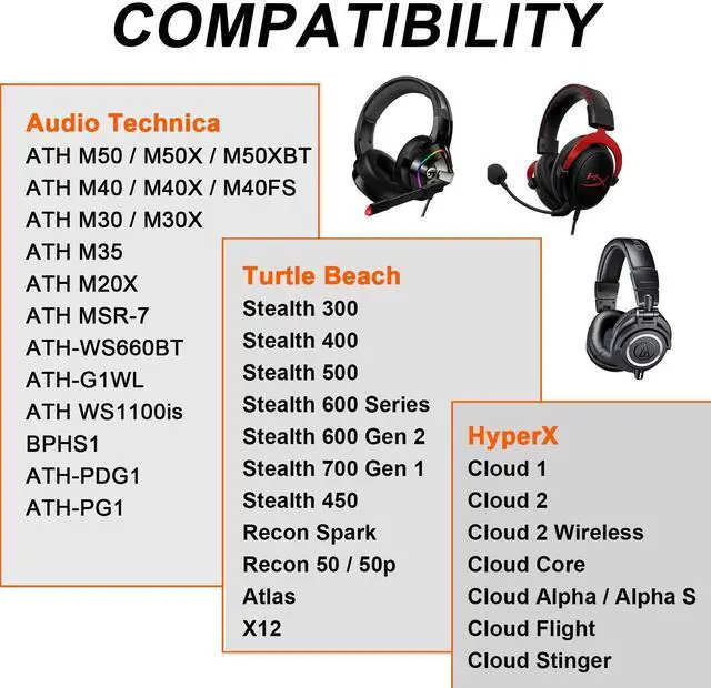 In order to better use the headset stand holder, please watch the nstallation Video. If you have any questions, please contact us. ^^ [Headband Cover Compatible] Fit most of big-sized headphones, Compatible with AKGs, Senheiser, Sony, Audio-Technica headphone. ^^ [Compatible] Gvoears replacement pads are compatible with HyperX Cloud 1/ Cloud 2/ Cloud 2 Wireless/ Cloud Core/ Cloud Alpha/Alpha S / Cloud Flight/ Cloud Stinger; for Turtle Beach Stealth 300/ 400/ 500/ 600 Series/ 600 Gen 2/ 700 Gen 1/ 450, Recon Spark, Recon 50 / 50p, Atlas, X12; for Audio Technica ATH M50 / M50X / M50XBT, ATH M40 / M40X / M40FS, ATH M30 / M30X, ATH M35, ATH M20X, ATH MSR-7, ATH-WS660BT, ATH-G1WL, ATH WS1100is, BPHS1, ATH-PDG1, ATH-PG1, and more.
