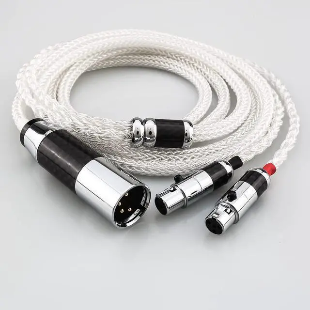 Carbon Fiber 4-pin XLR Balanced Male Pure Silver Headphone Upgraded Cable for Audeze LCD-2, LCD-3, LCD-4, LCD-X, LCD-XC