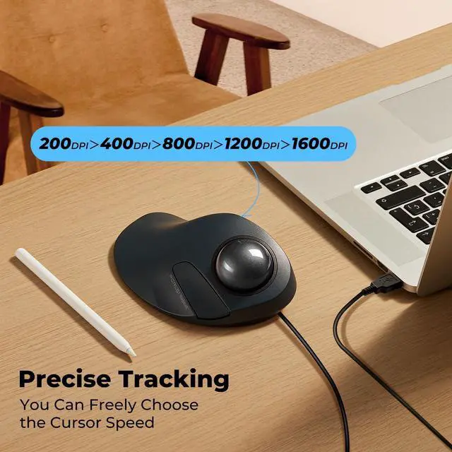 : This trackball mouse is expertly crafted to nestle in your hand like a glove, reducing muscle strain and offering exceptional supportespecially for users with larger hands. Imagine effortless, pain-free computing whether you're working or browsing.