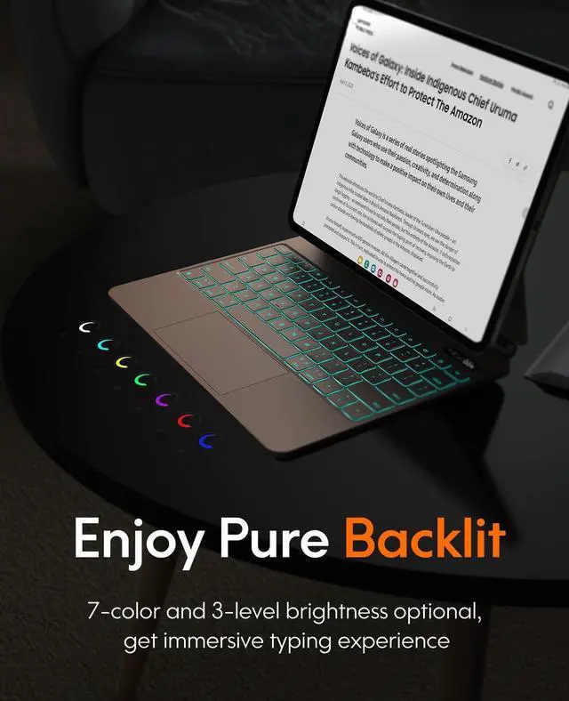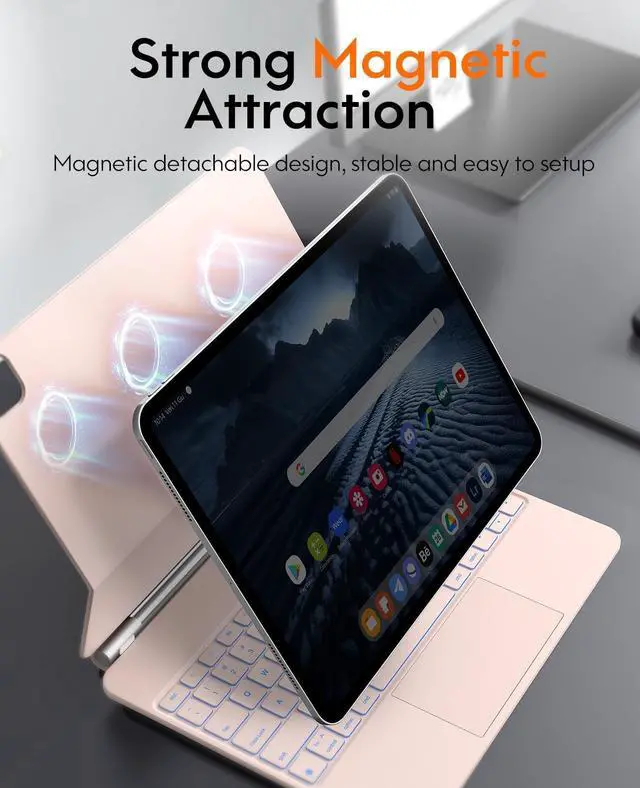 COMPATIBILITY -- This magic style keyboard case is only compatible with iPad Pro 13 inch (M4) 2024 (Model: A2925/A2926/A3007), note the model number on the bottom of the back of tablet. Tablet and Apple Pencil don't include. ^^ POWERFUL MAGNETIC ATTRACTION -- Built-in strong magnet, it can instantly attach and hold your tablet from falling. Floating Cantilever stand supports smoothly installing or removing tablet, which is convenient to use in vacation, learning or business. ^^ MULTI-TOUCH TRACKPAD -- Equipped with a multi-gesture touchpad, this new pro 13 keyboard allows users to interact with tablet in a more intuitive way. With multi-functional shortcut keys, it provides an efficient and convenient laptop-like experience. ^^ VARIOUS BACKLITS WITH BREATHE-LIKE MODE --7 different backlight colors for iPad Pro 13 (M4) keyboard, which helps you to use it even in low light conditions. Press fn & cmd to change the levels of the brightness. (off/low/mid/high/breathe-like mode). If you choose the breathe-like mode, the color will automatically switch. ^^ DIGITAL DISPLAY SCREEN -- The display status includes power, caps Lock, charging, and wireless connection status. It makes it easier for you to know whether it has been turned on or not, whether the Caps Lock function is turned on or not, whether the wireless connection is successful or not, and how much battery power is left or need to recharge the keyboard.