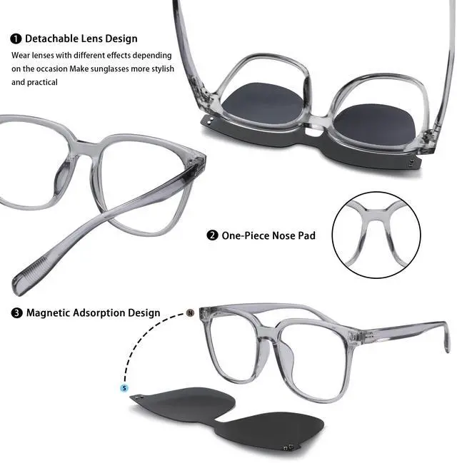Magnetic Clip-On Lenses: Seamlessly switch between blue light blocking, and polarized sunglass lenses, helping vision and eye protection in situation.