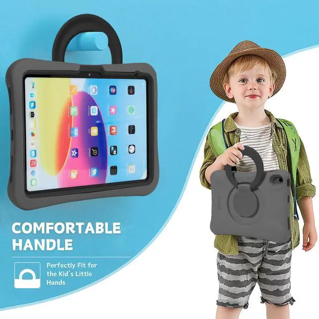 Ergonomic Design*/: Perfectly fit for the Kids little hands. The streamlined ring structure is used as a angle-adjustable stand and a carrying handle.