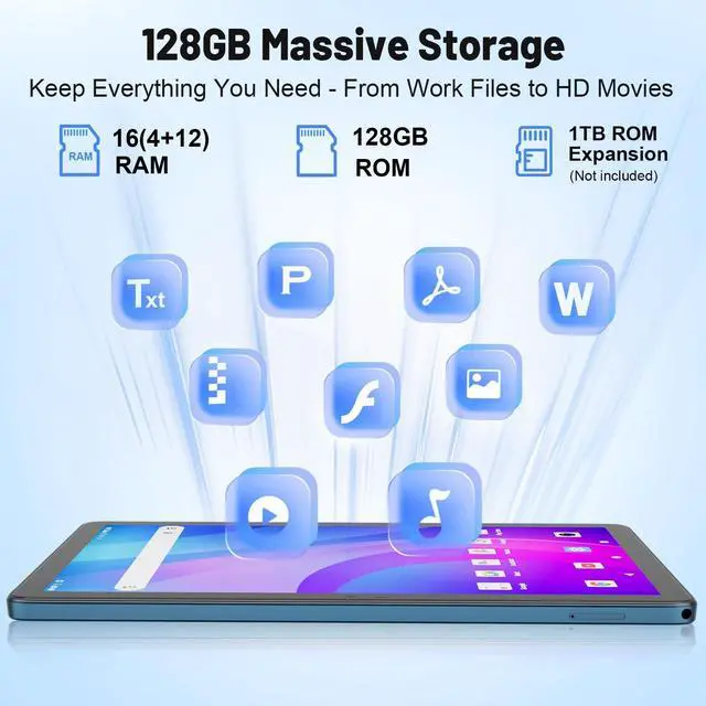 Productivity: Equipped with a high-capacity 8000mAh battery, this 10 inch Android tablet offers extended usage time for browsing, gaming, video calls, and streaming movies no need to worry about frequent recharging during your busy day ^^ 16GB RAM (4GB + 12GB Expansion) + 128GB