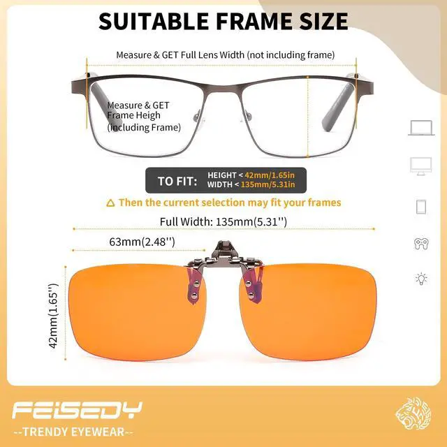 [Anti Blue Light Glasses] - FEISEDY flip up clip on blue light blocking glasses can protect your eyes by effectively blocking harmful blue light, effectively protect your eyes while enhancing color contrast. You can enjoy gaming, computer work, reading e-books, watching TV, using smartphones and tablets.This glasses reduce eyestrain and headache, improve your sleep quality. Bring you better sleep and better spirits