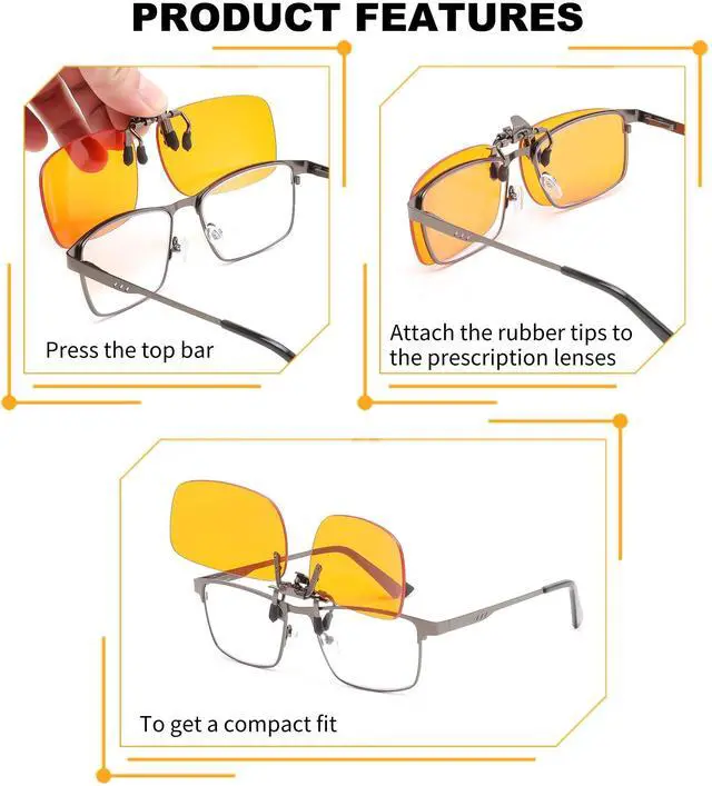 [Reduce Discomfort] - The clip on anti-blue light lenses will reduce eye strain caused by long exposure of blue