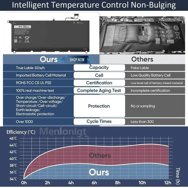 Safety First: Built to the highest industry standards, our battery features advanced safety measures including Overcharge & Overdischarge Circuit Protection, Over-temperature Protection, and Short-circuit Protection, ensuring dependable use for your laptop. ^^ 5.
