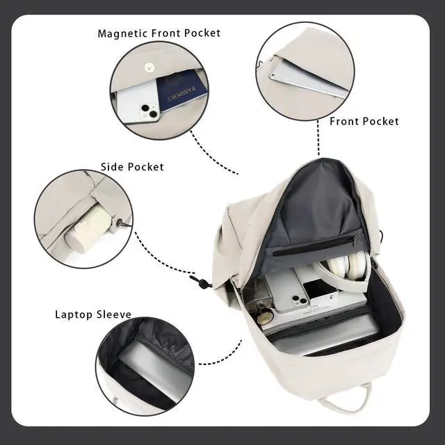 LOTS OF STORAGE SPACE&POCKETS: The backpack features a large capacity design with compartments, one spacious packing compartment roomy for daily necessities, tech electronics accessories, providing ample storage space. There are two front pockets for clothes, ipad, magazine and other necessaries belongings. You can place items in an orderly manner. This backpack can accommodate up to 15.6 -inch laptops.